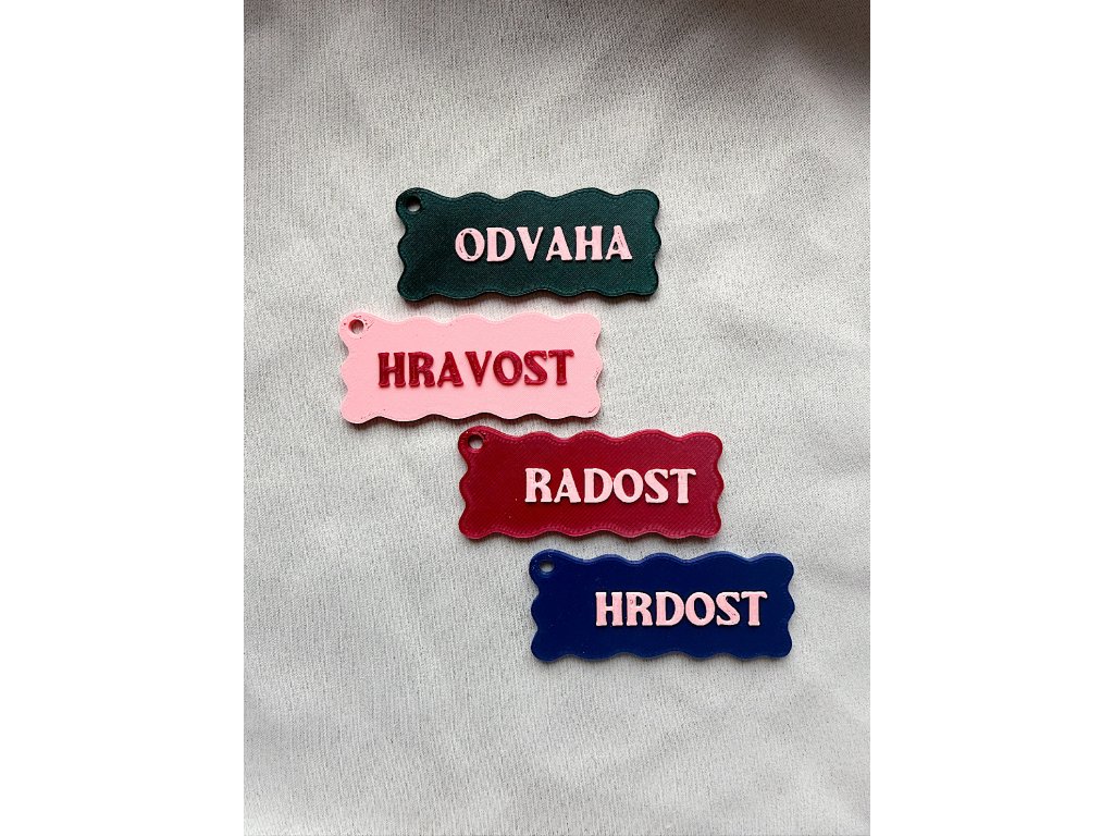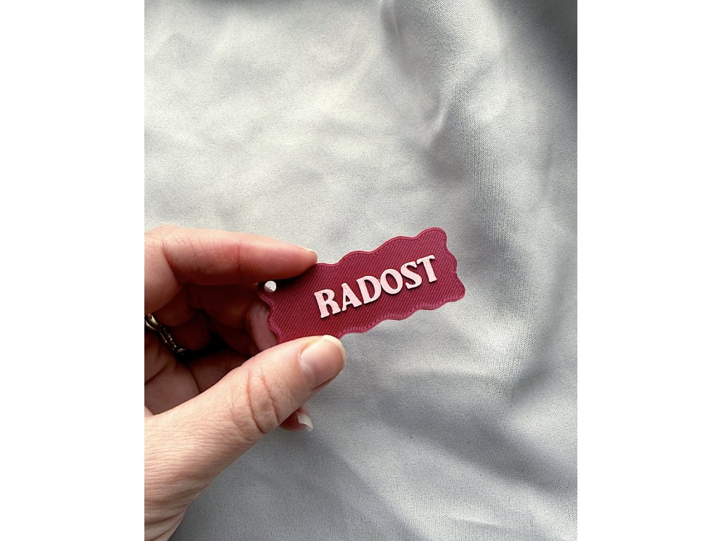 Provedení klíčenky je 3D tisk, podívejte se prosím na fotografie do detailu. 3D tisk má svou ikonickou strukturu a u některých kusů mohou také zůstat tiskové “vlásky”. Všechny se snažím plně odstranit, některé se ztratí časem používáním.